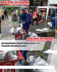 www.bincangekonomi.comǁJakarta,8 Februari 2026-Sebanyak 171.134 petugas gabungan dari Pemprov DKI Jakarta, Palang Merah Indonesia (PMI), TNI-Polri, dan unsur lainnya melakukan kerja bakti, Minggu (8/1/2026). Gubernur DKI Jakarta, Pramono Anung mengatakan kerja bakti melibatkan ratusan ribu petugas gabungan dan warga ini dilakukan serentak untuk menjaga kebersihan dan kenyamanan kota. “Ini juga menindaklanjuti apa yang menjadi arahan Presiden ketika Rakornas kemarin. Tetapi bagi Jakarta, kegiatan seperti ini akan dilakukan…