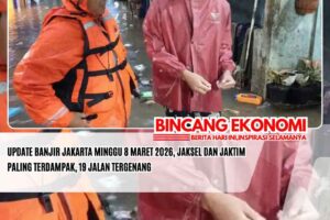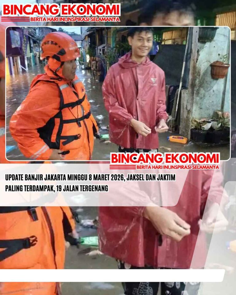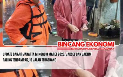 www.bincangekonomi.comǁJakarta,8 Maret 2026-Badan Penanggulangan Bencana Daerah (BPBD) DKI Jakarta menyampaikan perkembangan terkini banjir di wilayah ibukota, Minggu (8/3/2026). Hujan deras yang melanda wilayah DKI Jakarta dan sekitarnya pada Sabtu (7/3/2026) hingga Minggu (8/3/2026) menyebabkan terjadinya genangan di wilayah DKI Jakarta. “BPBD mencatat saat ini terdapat 147 RT dan 19 Jalan tergenang,” kata Kepala Pusat Data dan Informasi BPBD DKI Jakarta Muhammad Yohan dalam keterangan tertulis. Adapun data…