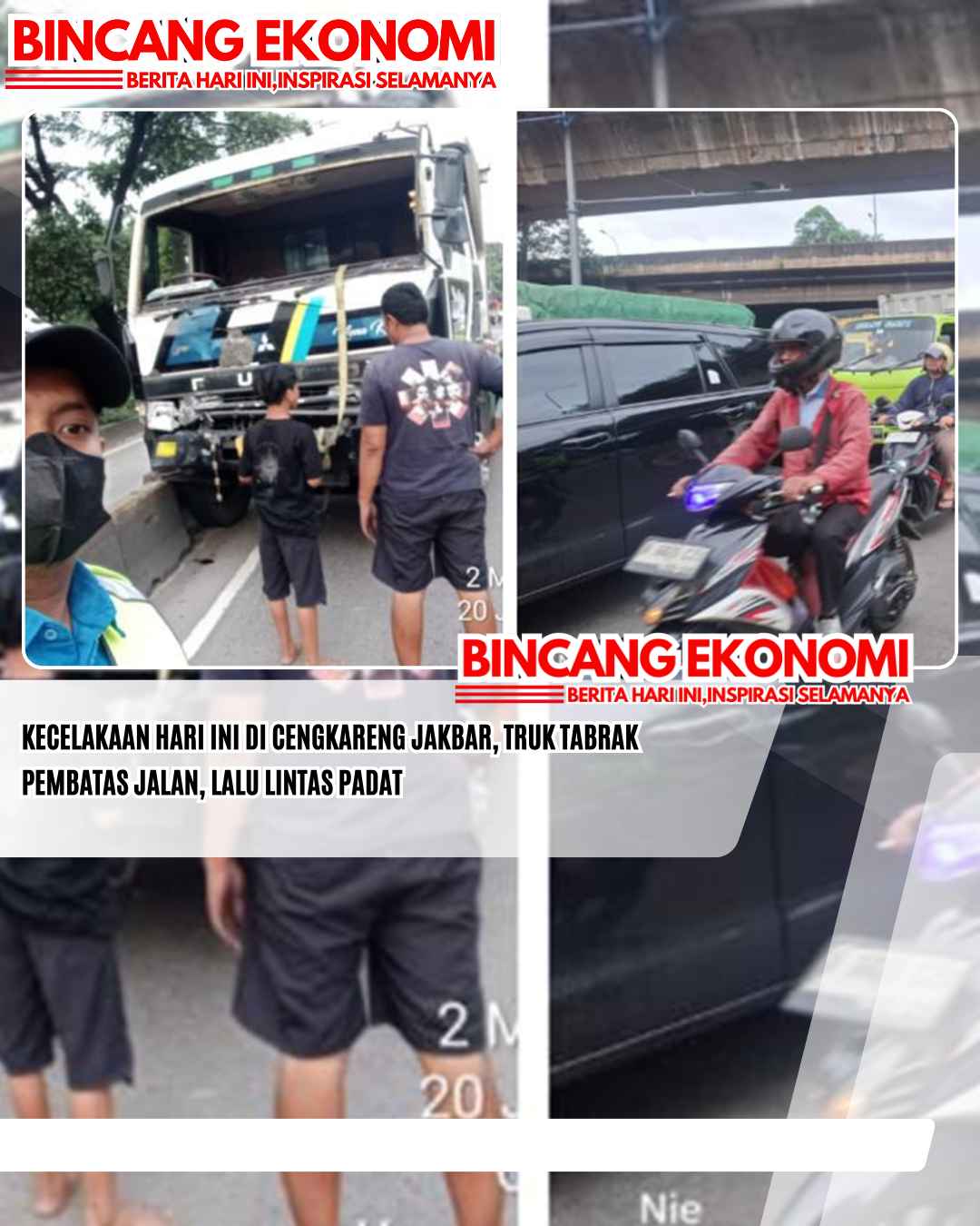 www.bincangekonomi.comǁJakarta,2 Maret 2026-Peristiwa kecelakaan hari ini di Cengkareng, Jakarta Barat, truk menabrak pembatas jalan, Senin (2/3/2026) pagi.